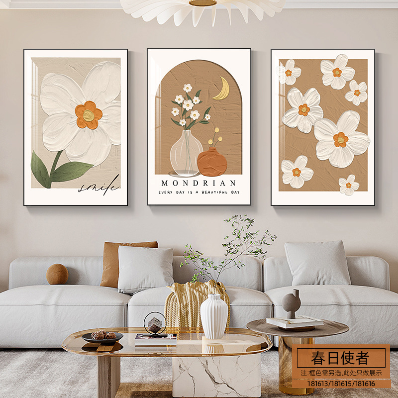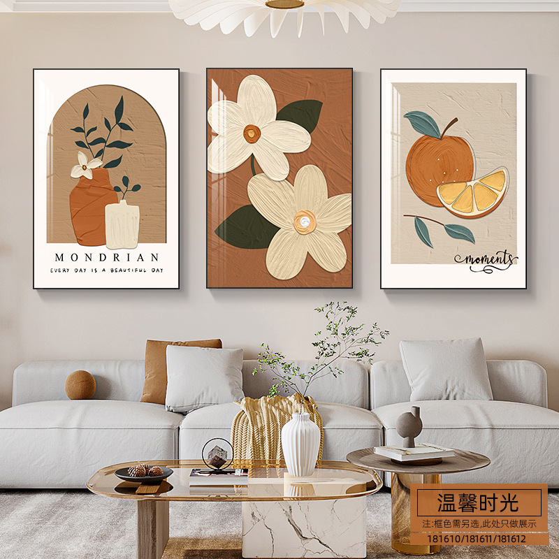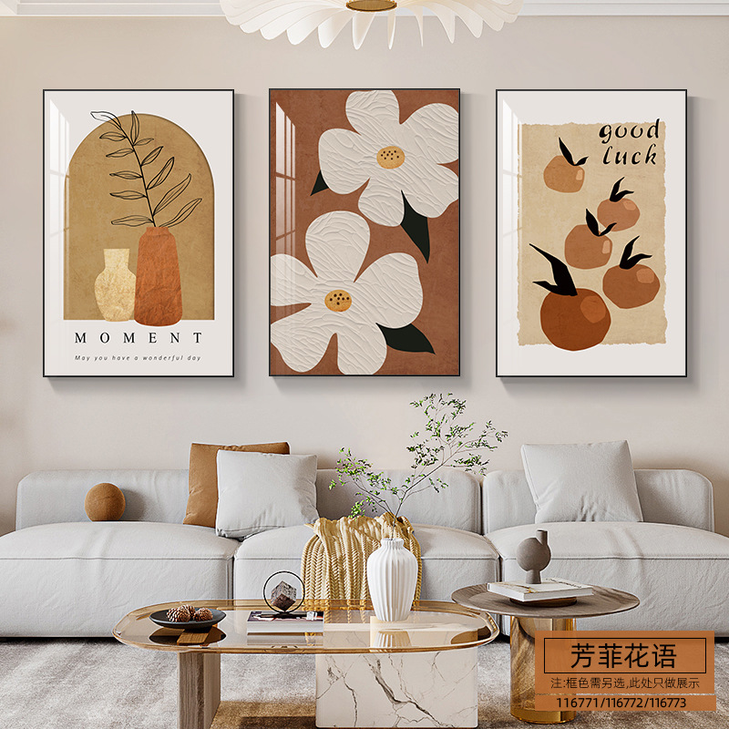 客廳裝飾畫現代簡約靜物花卉三聯畫餐廳牆畫北歐風沙發背景牆掛畫