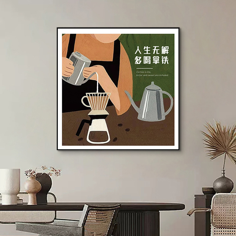 小衆奶茶店大芬村油畫北歐餐廳牆壁掛畫吧檯咖啡廳藝術高級裝飾畫